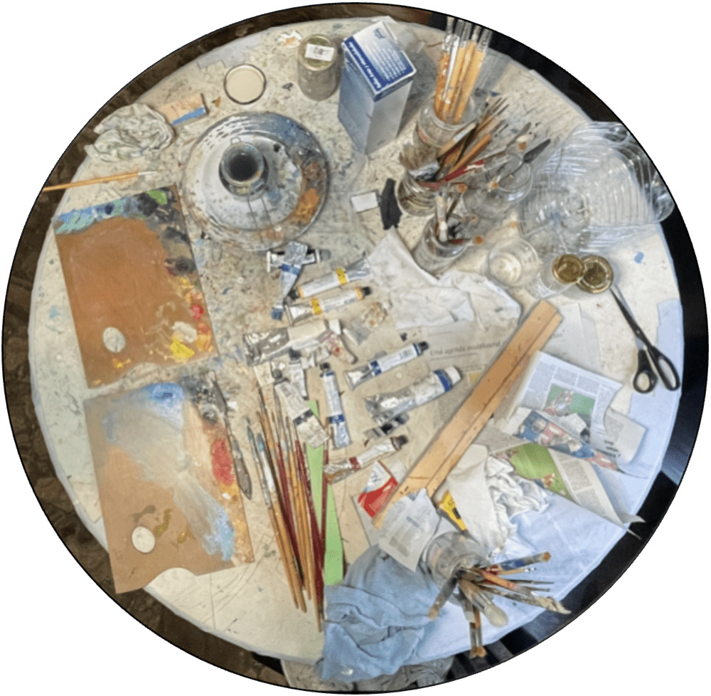 Suelo trabajar directamente en el exterior para realizar una serie de bocetos previos, que, unidos a referentes fotográficos, me permiten abordar el cuadro definitivo en el estudio, donde tengo más libertad horaria. La hora del día y la luz son elementos fundamentales, porque el color cambia constantemente y, en mi pintura, éste es un elemento expresivo primordial.