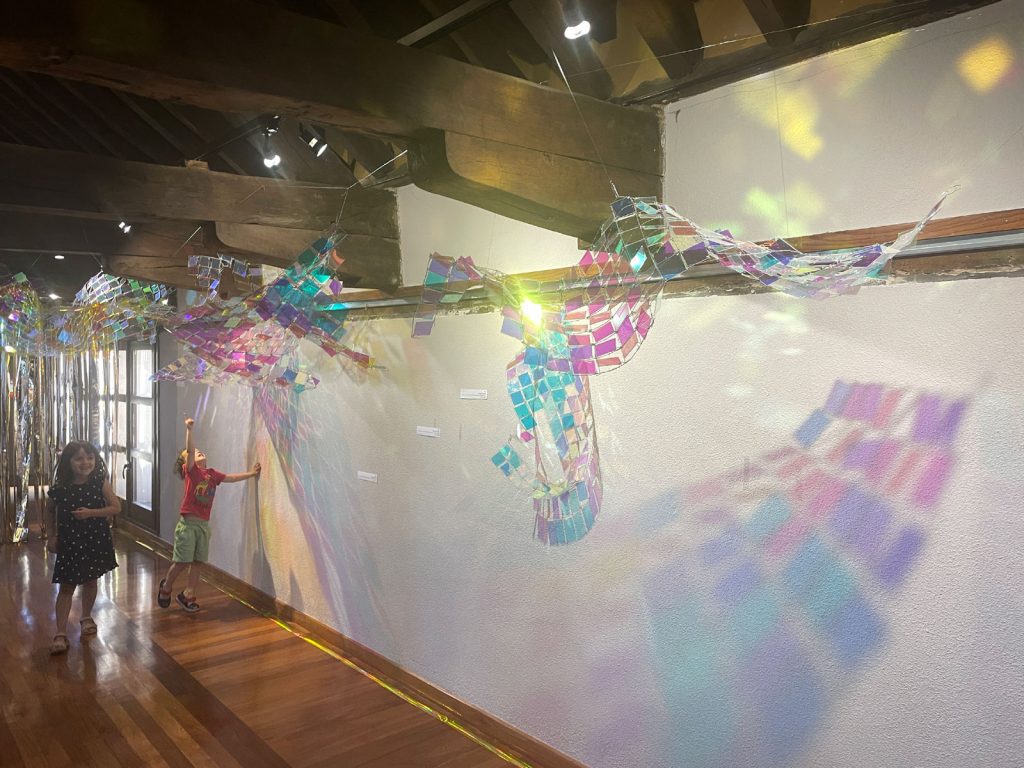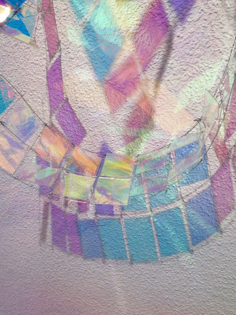 Vidrio acrílico iridiscente / malla metálica.